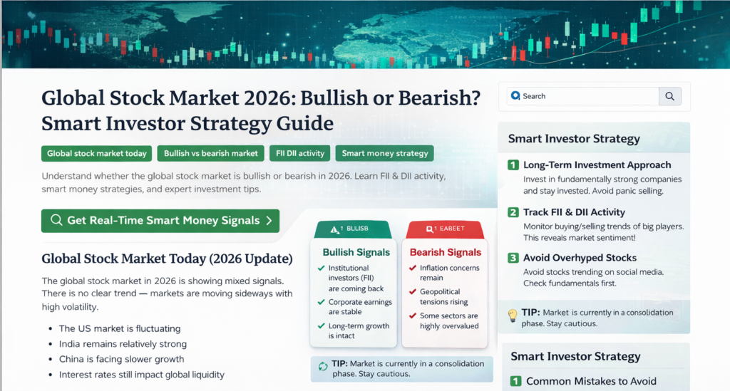 The global stock market in 2026 is showing mixed signals. There is no clear trend โ markets are moving sideways with high volatility.